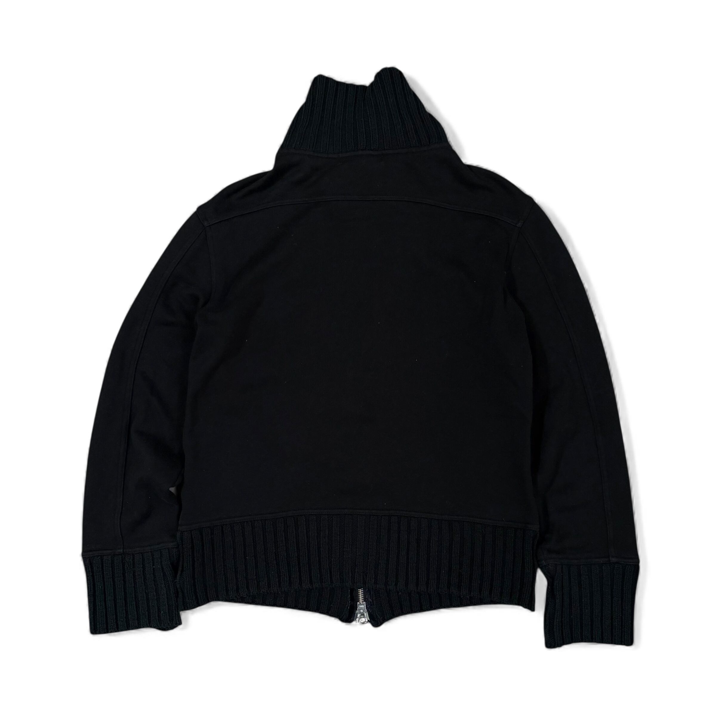 短丈ダブルジップ、高めのネック、ニット切替。